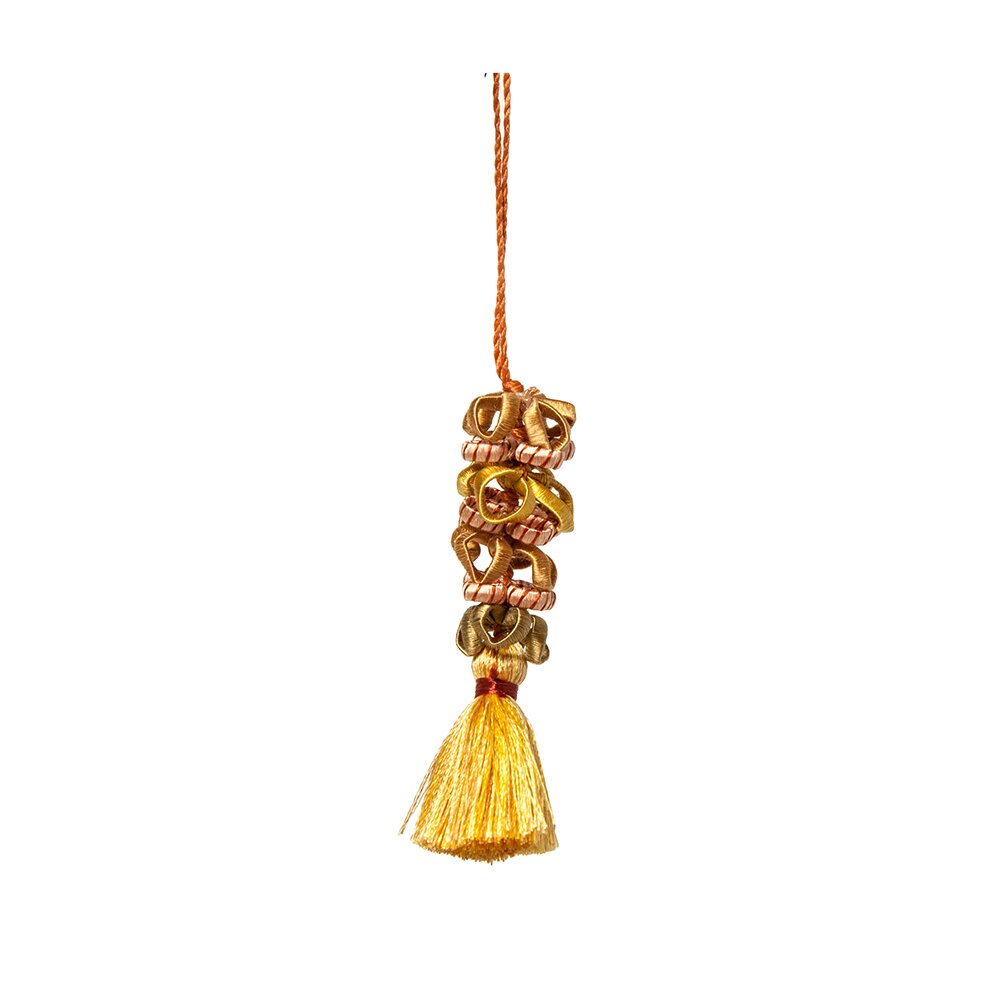 An elegantly hand-made silk tassel with delicate detailing for scissor fob or cabinet keys.